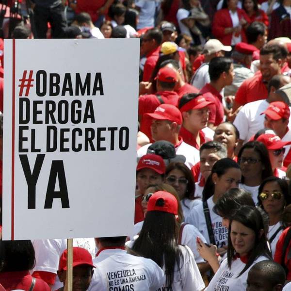 recaudación de la firma de al menos 10 de los 30 millones de habitantes de Venezuela para exigir la derogación del decreto por el cual Obama declaró a su país en "emergencia nacional" tras considerar a Venezuela una "inusual y extraordinaria amenaza" para la seguridad estadounidense.