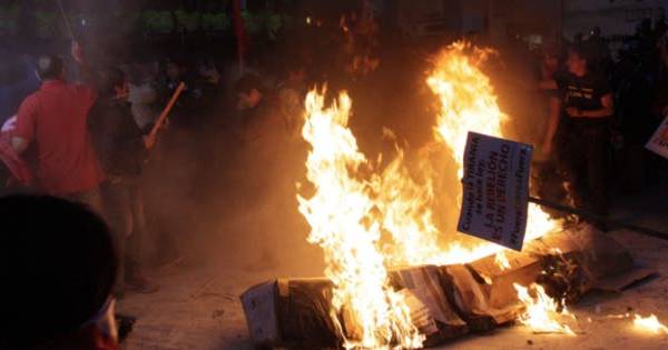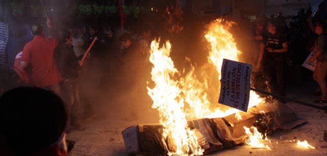 Los opositores explotaron petardos, hiriendo a uniformados.