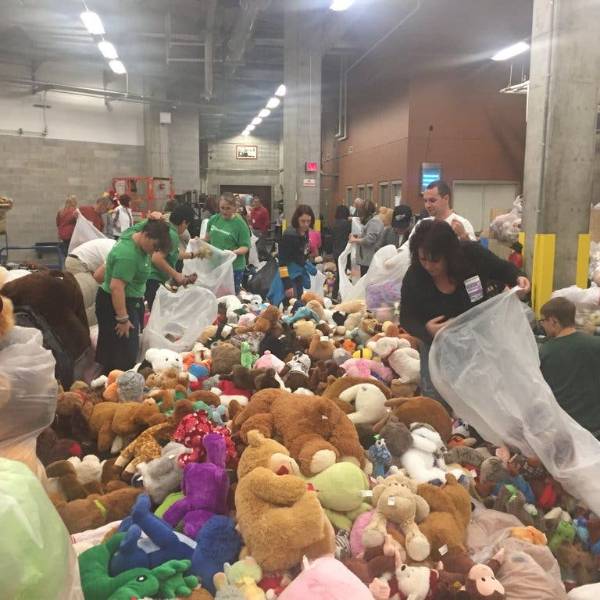 El evento anual es organizado por la comunidad local como una manera de reunir regalos para niños necesitados. Luego de la lluvia de osos, voluntarios y fanáticos de los Hershey Bears se ofrecieron a recoger los muñecos y contarlos.
