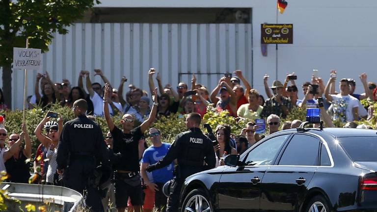 "¡Preocúpate primero de tu propia gente!", le reclamó una persona mayor a Merkel cuando accedía, entre fuertes medidas de seguridad, al centro de refugiados.