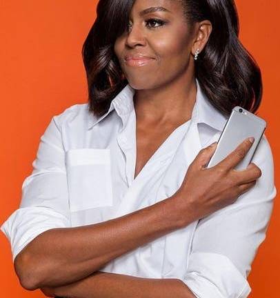Un usuario de Twitter, @meagnacarta, compartió una inusual fotografía de Michelle Obama luciendo su pelo natural, recogido y con una cinta gris sujetada a su cabeza.
