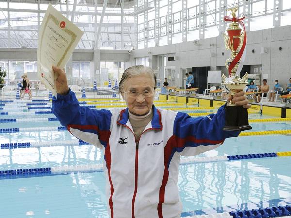 Nagaoka no empezó a nadar hasta los 80 años, en el marco de un programa de rehabilitación de una rodilla enferma, según la agencia.