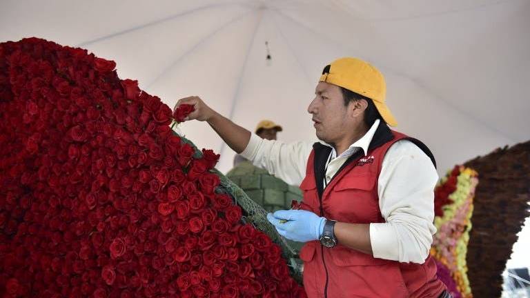 La belleza y vivacidad de los colores de las rosas utilizadas en el arreglo floral denotan esa calidad de la flor ecuatoriana, añadió Noboa, que da los últimos toques al diseño, con el objetivo de que esté listo para el lunes. "Va a quedar muy bonito", afirmó al precisar que la elaboración del arreglo duró entre tres y cuatro días.