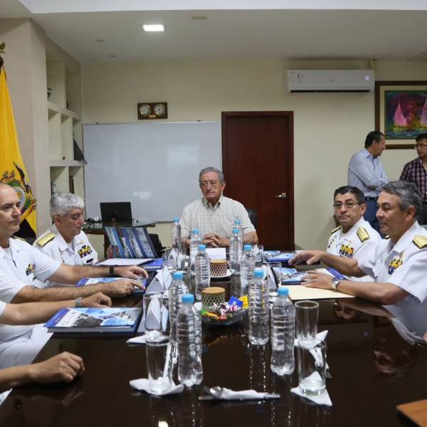 El ministro de Defensa, Oswaldo Jarrín, destacó el equipamiento y la capacitación de la Armada de Ecuador para desplegar acciones de control en el mar.