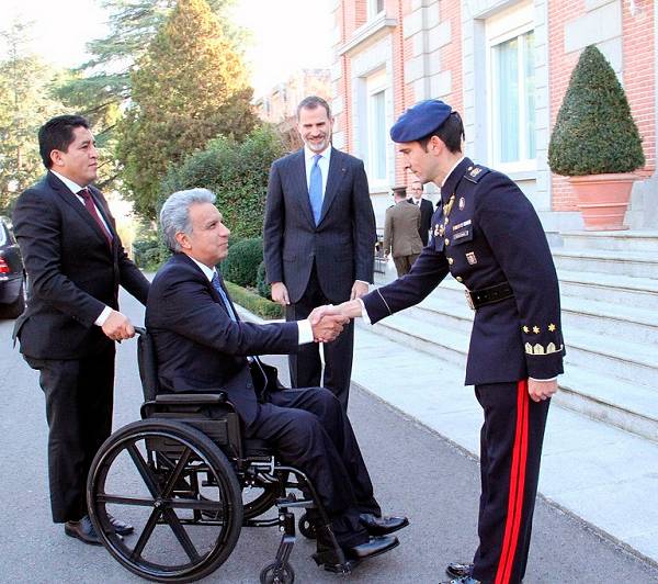 El rey Felipe VI recibió en el Palacio de la Zarzuela al presidente de la República, Lenín Moreno, que inició una visita oficial de dos días a España y con quien examinó las perspectivas de cooperación bilateral y diversas cuestiones iberoamericanas.