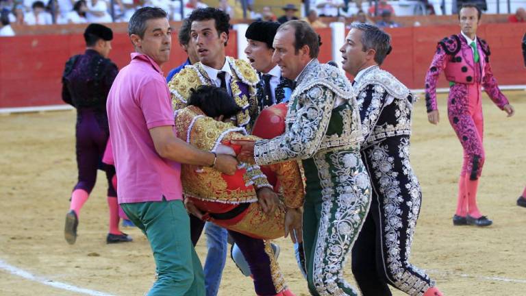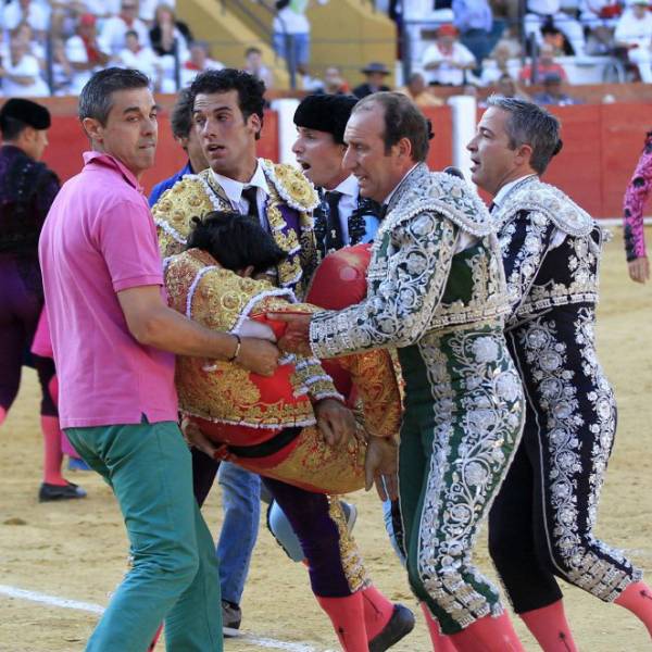 Las imágenes televisadas de la corrida muestran como Lorenzo, un toro de más de 500 kilos, le asesta una cornada fatal, que parece hundirse bajo la axila, y sacude varias veces, con violencia, al torero, que llevaba un traje rojo y dorado.