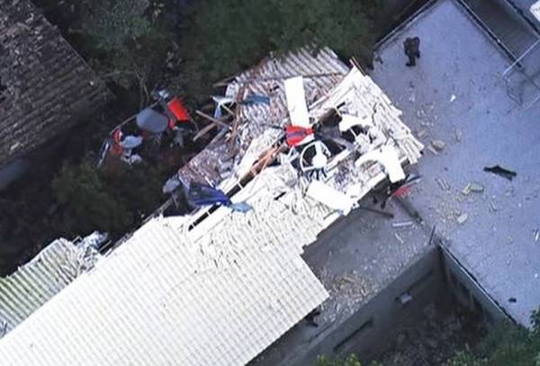 Imágenes de la TV Globo mostraban los restos del aparato incrustados sobre esta casa, que según la policía, se encontraba en construcción y no tendría ocupantes en el momento de la caída.