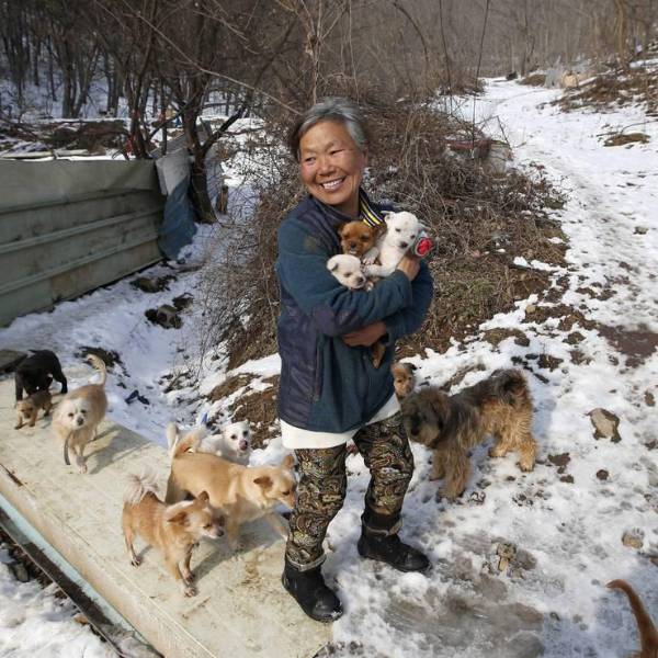 La mujer ha recogido varios perros que deambulan por las calles de Corea del Sur y también ha comprado a aquellos que se encuentran en peligro de ser vendidos como alimentos.