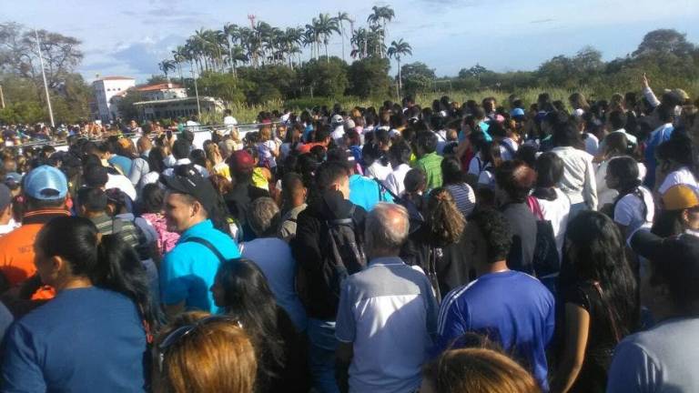 Tras el anuncio, desde la madrugada local de hoy, centenares de venezolanos hicieron fila en el puente Simón Bolívar para pasar al lado colombiano.