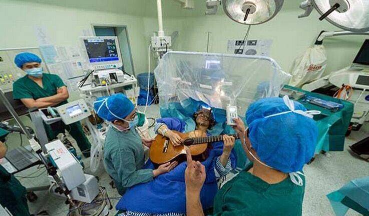 Durante la operación el paciente tuvo que tocar la guitarra para que los médicos detectaran las señales que llegan al cerebro.