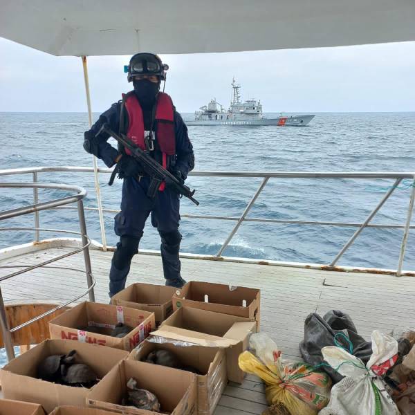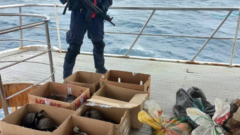 A 30 millas náuticas de la Puntilla de Santa Elena, la Armada del Ecuador realizó la aprehensión de dos embarcaciones. En una de ellas se transportaban 10 sacos de yute con especies protegidas traídas desde Galápagos. La otra fue retenida para investigaciones por presunta complicidad.