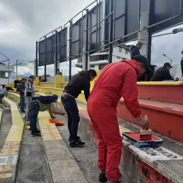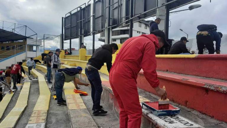 Los arreglos del Estadio Alejandro Serrano Aguilar iniciaron, luego de que el Municipio de Cuenca dio por terminado el comodato con la Federación Deportiva del Azuay. Este domingo arrancó las adecuaciones con la colaboración de 120 personas privadas de la libertad, quienes pintaron los graderíos de amarillo y rojo como parte de su trabajo comunitario.