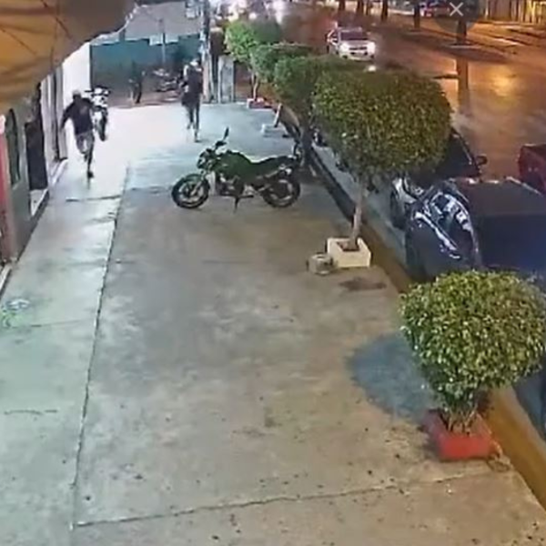 Según se observa en un video grabado por una cámara de seguridad, la víctima se encontraba dentro de un vehículo cuando notó la presencia de hombres en moto.