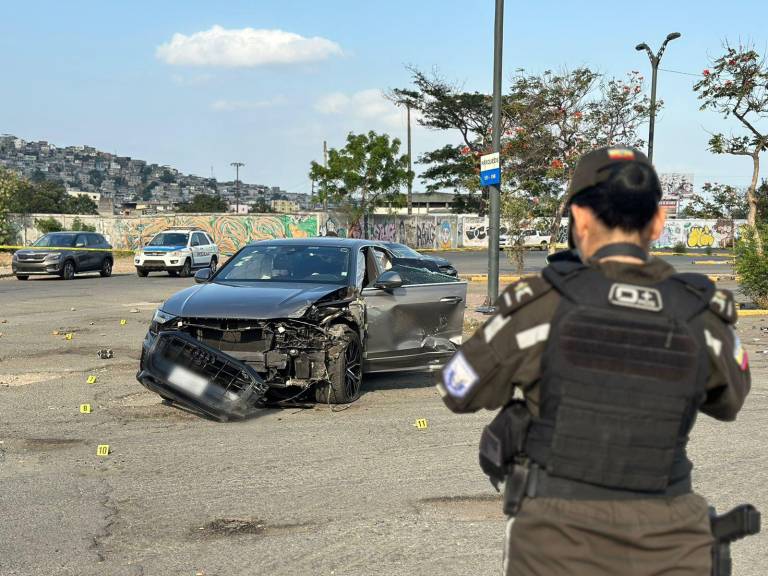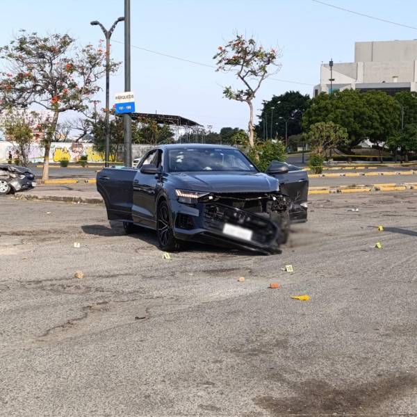 En la escena del crimen quedó el vehículo de alta gama, un Audi de modelo Q8 del año 2019, el cual tenía múltiples marcas de disparos y toda la parte frontal destruida por el choque. Así mismo, el otro auto en el que se movilizaban los gatilleros también tenía marcas de la colisión. Agentes policiales recolectaron 84 indicios balísticos.