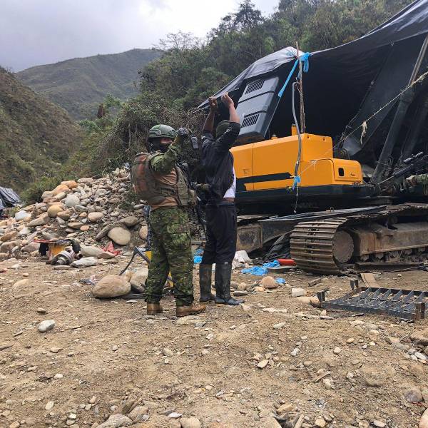 Un operativo contra la minería ilegal en la provincia del Azuay se saldó con la destrucción de 45 campamentos mineros, trece dragas y la neutralización de cinco excavadoras, informó este jueves el Ministerio de Defensa.