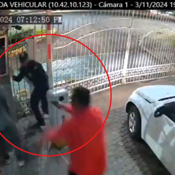 Asimismo, en las imágenes se observa cómo uno de los guardias de seguridad en la garita fue amedrentado con un arma de fuego y luego atado.