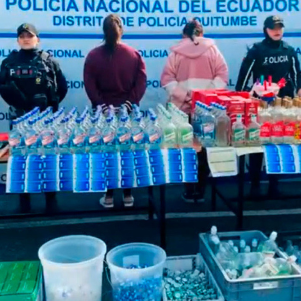 Dos mujeres fueron detenidas en la intervención y se prevé que enfrentarán cargos por organización criminal, falsificación y atentar contra la salud pública al producir y comercializar licor adulterado, según indicó la dependencia municipal referida.