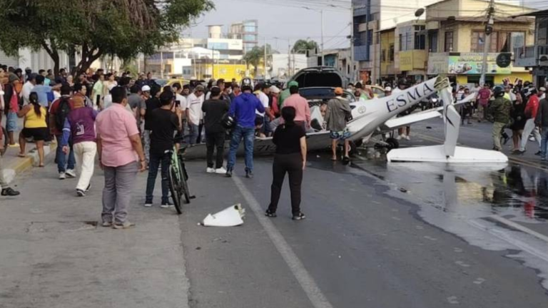 Los restos de la aeronave, que realizaba un vuelo de instrucción, según informó la Fuerza Aérea Ecuatoriana (FAE), quedaron esparcidos a lo largo de la avenida Eleodoro Solórzono. Ciudadanos se aglomeraron en la zona para observar lo ocurrido y prestar ayuda.