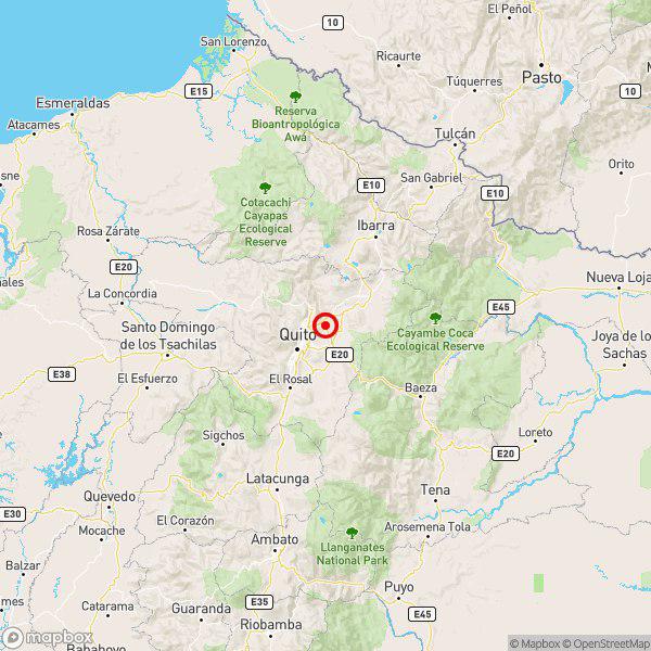 El epicentro fue localizado a 13.77 kilómetros de Quito, en la provincia de Pichincha, con coordenadas de latitud 0.102° S y longitud 78.372° W. Hasta el momento, no se han reportado daños materiales ni víctimas a causa del evento.