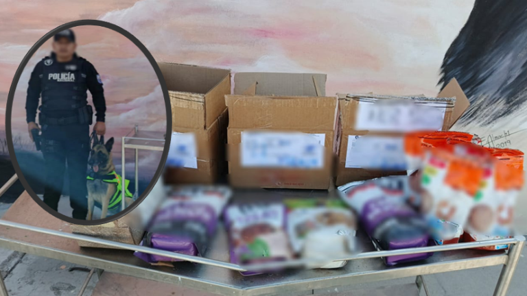 Las acciones se ejecutaron en el área de carga de paletizadoras, donde el can detector 'PERLE' dio la alerta sobre varios paquetes, que fueron sometidos a una inspección visual, manual e intrusiva por parte del personal policial.
