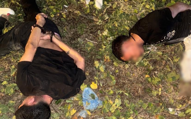 De igual manera, en otras fotografías, se observa a los dos hombres que acompañaban al hombre abatido. Ambos se encontraban esposados en el suelo, cerca de otra pistola que yacía sobre la tierra.