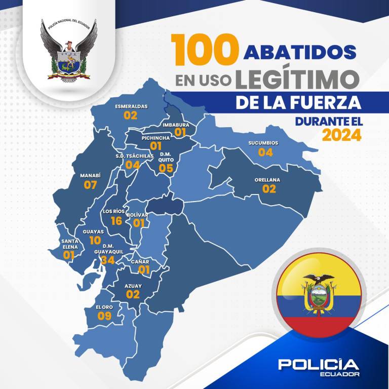 Estas cuatro provincias, que concentran la mayor parte de los casos de presuntos delincuentes abatidos por la Policía, se encuentran dentro del último estado de excepción decretado por el presidente, Daniel Noboa, para combatir a las bandas de crimen organizado.