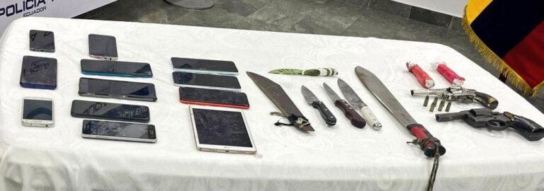 Aproximadamente a las 04h00, agentes del eje preventivo y unidades especializadas la Policía Nacional se desplegaron en el sector de El Mirador, distrito La Delicia, al norte de la capital, donde aprehendieron a los sujetos por el delito de porte y tenencia de armas de fuego.