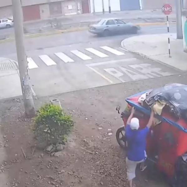 Las imágenes de las cámaras de seguridad en el distrito de San Martín de Porres revelaron el momento en que tres hombres llegaron a un lugar solitario en un mototaxi con un colchón sobre el techo del vehículo. Una vez allí, dos de los hombres bajaron el colchón y lo dejaron en el sitio.