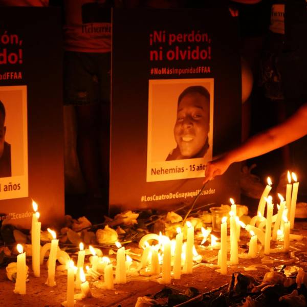 "Hemos venido a pedir justicia y que este caso no quede en la impunidad", dijo a EFE Antonio Arroyo, tío de Ismael y Josué Arroyo (de 15 y 14 años), quienes junto a sus amigos Saúl Arboleda (15) y Steven Medina (11) fueron detenidos por los militares la noche del 8 de diciembre, cerca de un centro comercial del sur de Guayaquil.