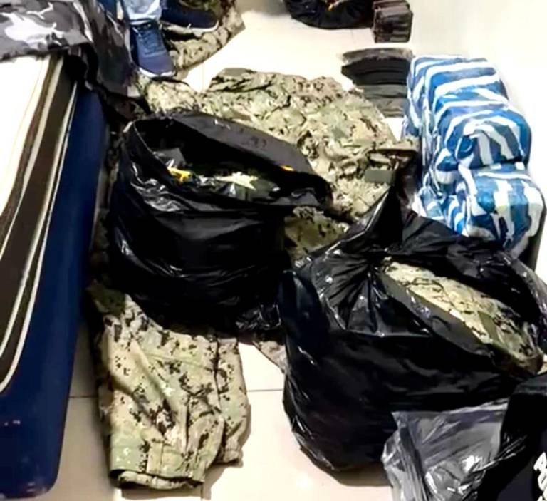 En el domicilio se incautaron como parte de las evidencias: cocaína, heroína, armas, municiones e indumentaria similar a la de la Policía y las Fuerzas Armadas.