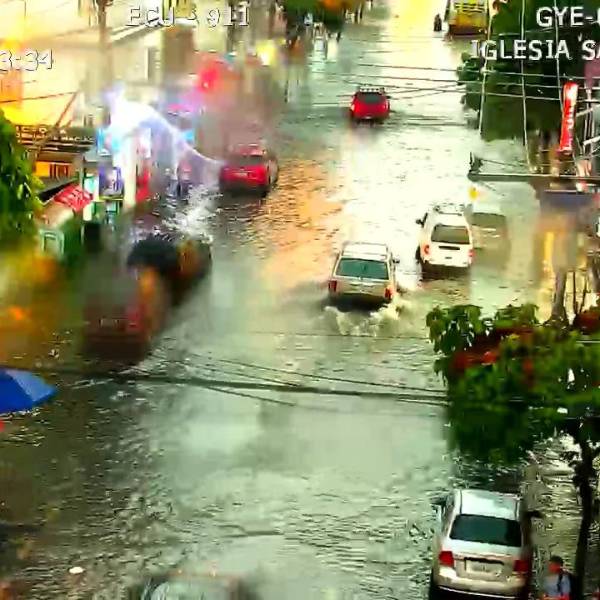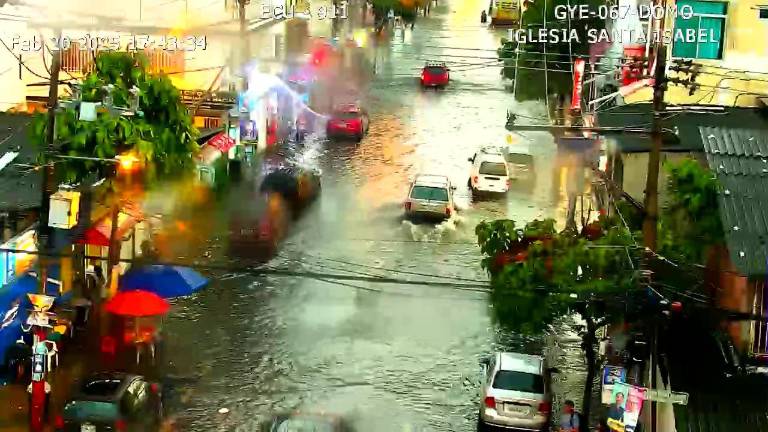 Varias zonas del norte y noroeste de Guayaquil quedaron inundadas este jueves debido a lluvias con tormentas eléctricas de alta intensidad, lo cual provocó congestión vehicular.