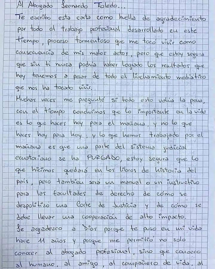En redes sociales se divulgó una misiva de Salazar a su abogado, Leonardo Toledo, tras su liberación.