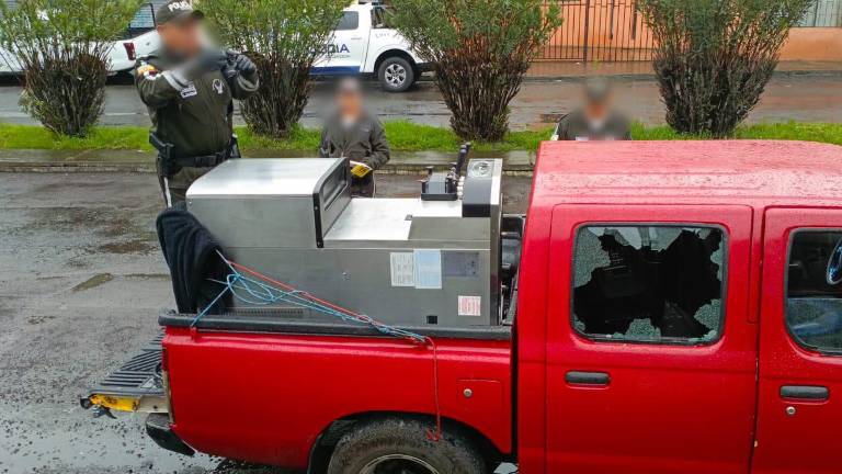 El comandante del Distrito Eloy Alfaro, Jhon Cárdenas, detalló que en el asalto participaron seis antisociales, quienes lograron sustraer una máquina industrial equipada con rastreo satelital, lo que facilitó su ubicación.