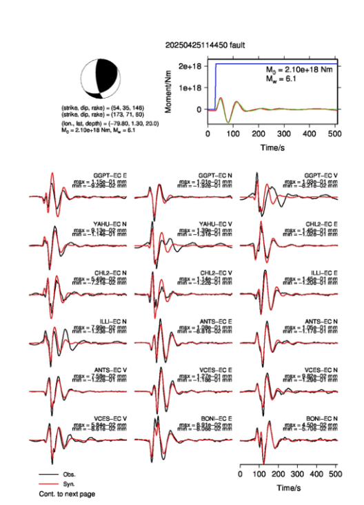 El Instituto Geofísico también compartió un gráfico con el mecanismo focal del evento, obtenido a partir de la inversión de formas de onda. La magnitud calculada en este análisis fue de 6.1 Mw.