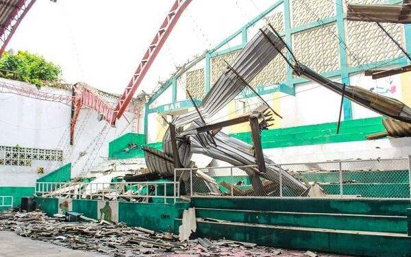 El coliseo Ricardo Plaza, ubicado en el centro de la ciudad de Esmeraldas, se vino abajo tras el fuerte sismo de magnitud 6.0 que sacudió la provincia. Las estructuras metálicas cedieron por completo y el lugar, que albergaba eventos deportivos y culturales, quedó reducido a escombros.