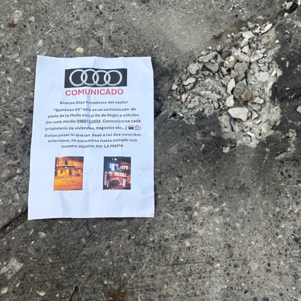 Agentes policiales acudieron al sitio para recabar indicios. Durante la inspección, encontraron varios panfletos con amenazas extorsivas, en los que se exigía a los propietarios de viviendas y negocios comunicarse a un número telefónico.
