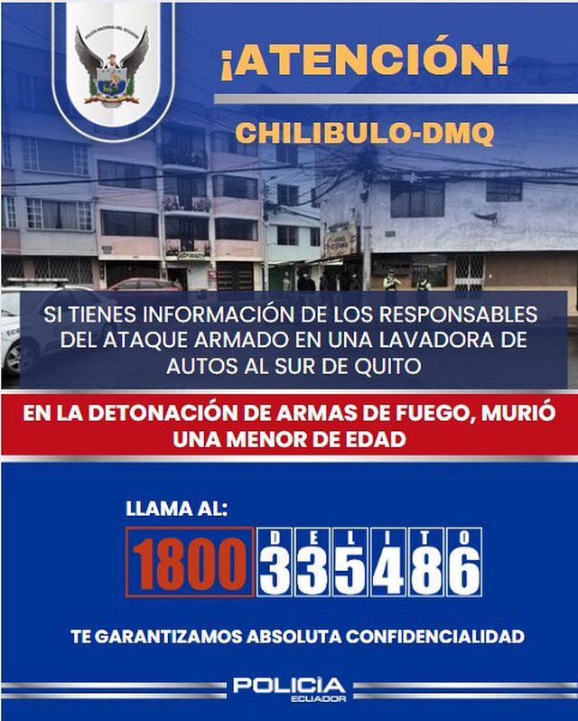 Un ataque armado que ocasionó la muerte de una menor de edad se registró este miércoles en una intersección del sector Chilibulo, en el sur de la ciudad de Quito.