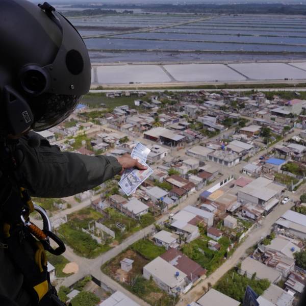 Desde helicópteros H145 COBRA, miembros del Grupo de Operaciones Militares de Ámbito Interno (GOMAI) lanzaron propaganda institucional en sectores conflictivos como El Arbolito, Recreo, Abel Gilbert, Los Helechos, Oramas Gonzales y Cerro Las Cabras.