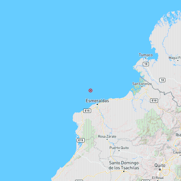 Mientras que el epicentro se localizó a 30,85 kilómetros de la ciudad de Esmeraldas, en las coordenadas 1,21 grados de latitud sur y 79,77 grados de longitud oeste.