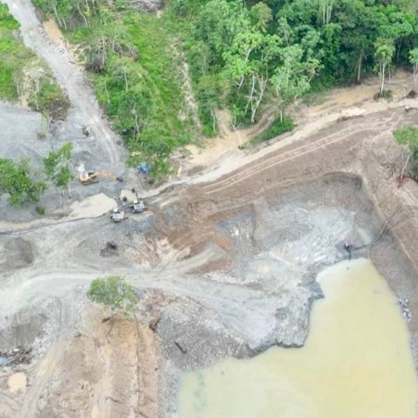 En sus redes sociales, el Ministerio publicó videos en los que se aprecian las labores de extracción ilegal en una zona donde se evidencian grandes excavaciones y destrucción de la vegetación.