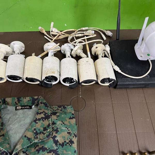 Además, en la vivienda hallaron nueve cámaras de video, municiones de diferente calibre, una luz de baliza y uniformes militares.