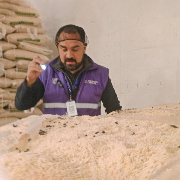 Personal gubernamental llegó este martes 15 de julio a la bodega de arroz, azúcar y granos secos en el sector Mayancela tras una denuncia ciudadana. Solo al entrar al sitio ya se percibió un “olor pestilente” que daba cuenta de que allí había un serio descuido en la limpieza y fumigación.
