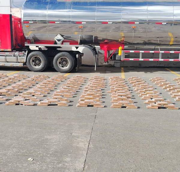 Más de 550 kilos de cocaína fueron hallados este martes 12 de agosto de 2025 escondidos en un doble fondo de un vehículo pesado interceptado en una vía de la provincia de Carchi, fronteriza con Colombia.
