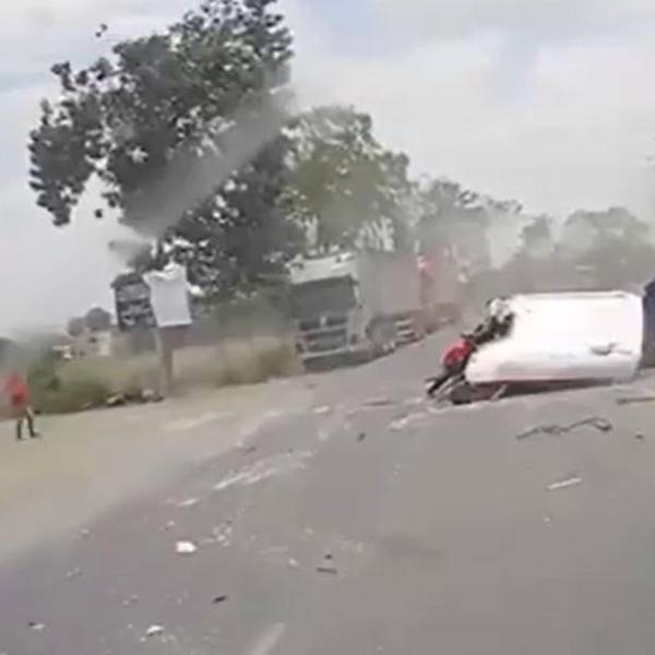 Un video que captó el siniestro muestra cómo el vehículo se estrella en una curva del viaducto contra un camión, luego de que otro vehículo pesado que iba por delante frenara de repente.