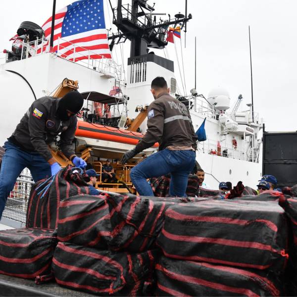 En el primer semestre del año, en Ecuador se habían incautado alrededor de 105 toneladas de droga, en su mayoría cocaína, según cifras oficiales, y a mediados de julio llegaron también a Manta 14 toneladas de droga que fueron decomisadas frente a las costas ecuatorianas en cinco operaciones coordinadas con EE.UU.