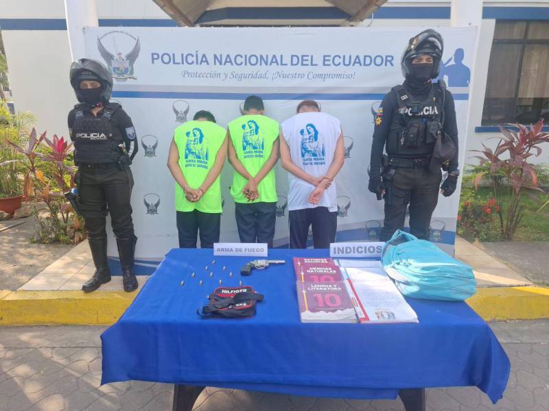 La Policía Nacional informó que tres adolescentes fueron aprehendidos tras ser encontrados en posesión de una pistola, que estaba escondida en una mochila.