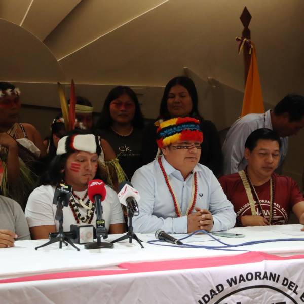 Durante una rueda de prensa en Quito, Juan Bay, presidente de la Nacionalidad Waorani del Ecuador (Nawe), subrayó que los pueblos amazónicos son víctimas de las operaciones extractivas y no responsables de ellas.