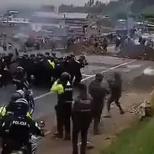 Miembros de la Policía Nacional se enfrentaron la tarde de este lunes a manifestantes que bloqueaban la vía E35, a la altura de la parroquia Julio Andrade, en la provincia de Carchi.