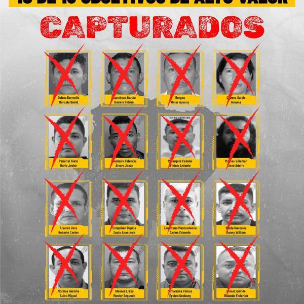 La Policía ha capturado a 16 de los 18 Objetivos de Alto Valor identificados en el país, entre ellos Rolando Federico Gómez Quinde, alias ‘Fede’, cabecilla de la organización delictiva “Los Águilas”, brazo armado de Los Choneros, quien fue detenido ayer en Medellín, Colombia.