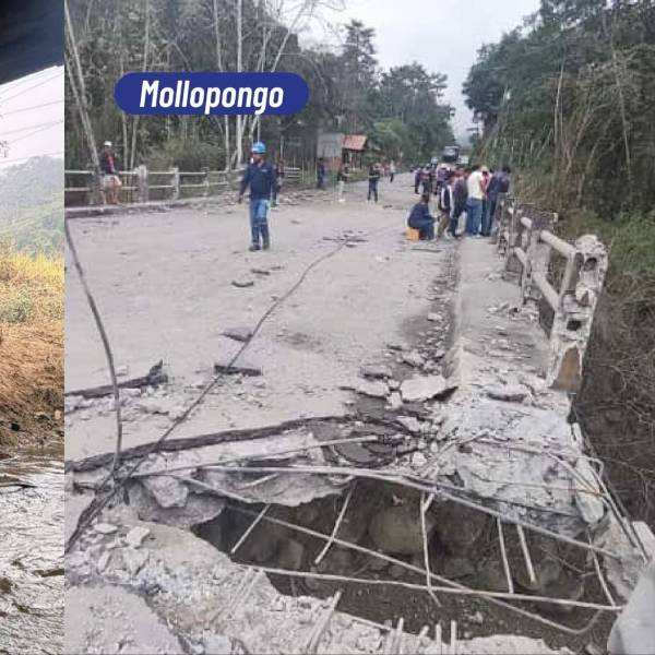 Por otro lado, en Mollopongo, en Azuay, el ministro adelantó que la cartera que encabeza instalará un puente Bailey. Hasta entonces, los vehículos livianos deberán transitar por la ruta: Pasaje–Quera–Uzhurrumi–Sarayunga–Cuenca y los vehículos pesados por Cuenca–Puerto Inca–Naranjal–Pasaje.